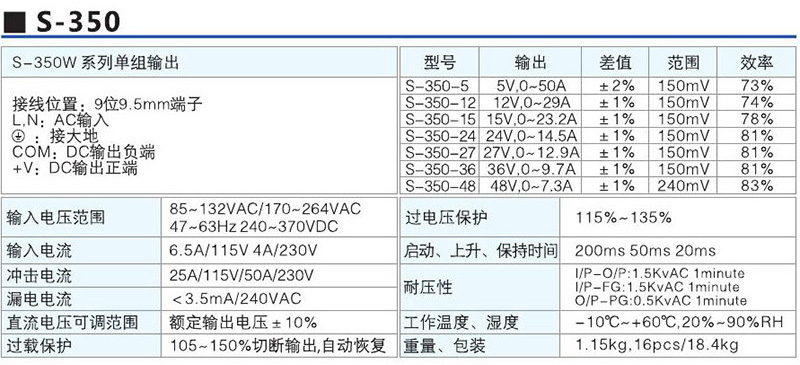 S-350W系列单组输出