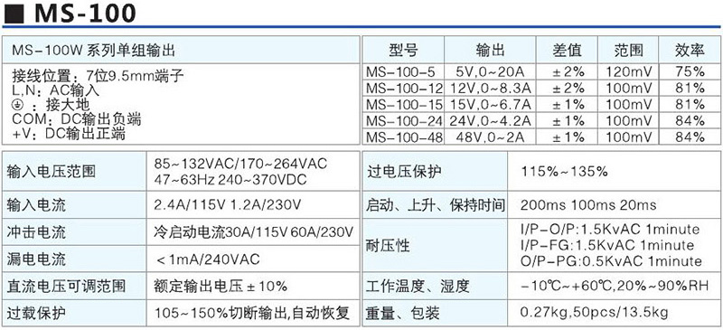 MS-100W系列单组输出