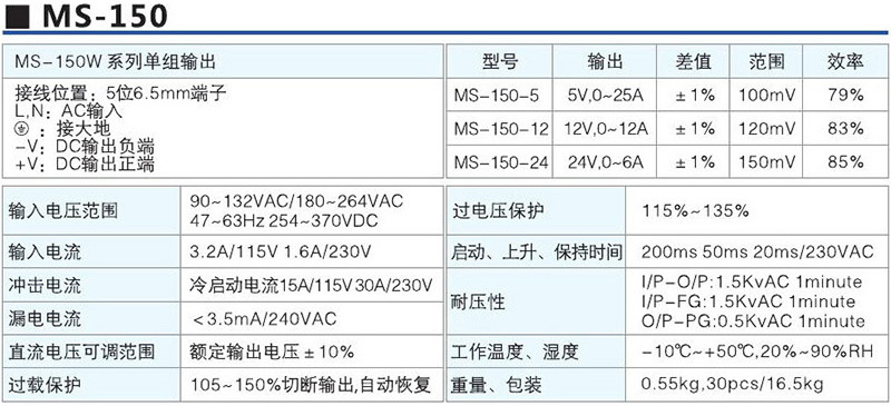 MS-150W系列单组输出