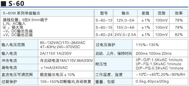 S-60W系列单组输出